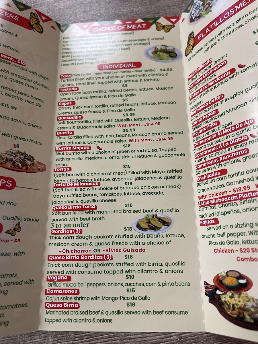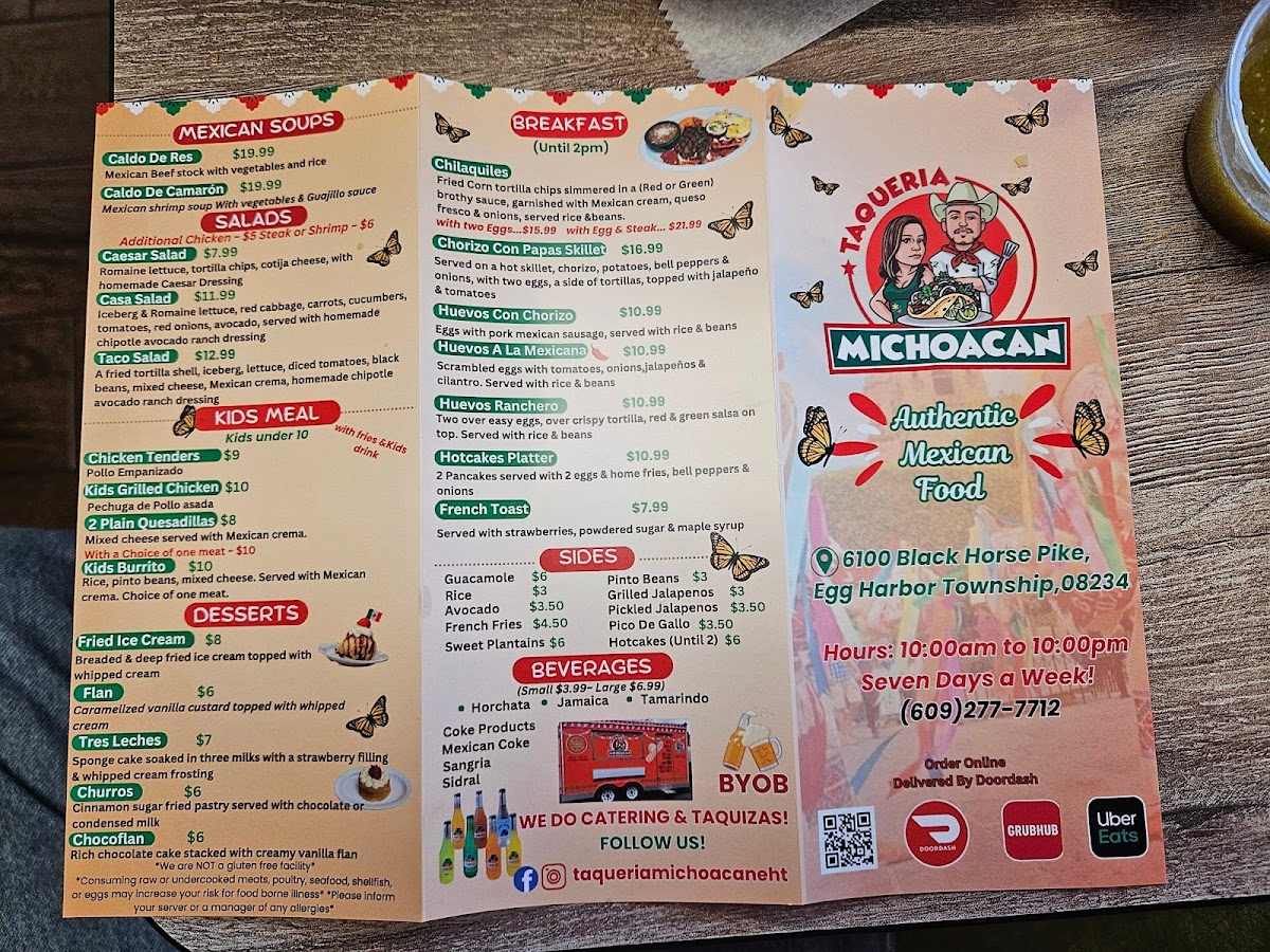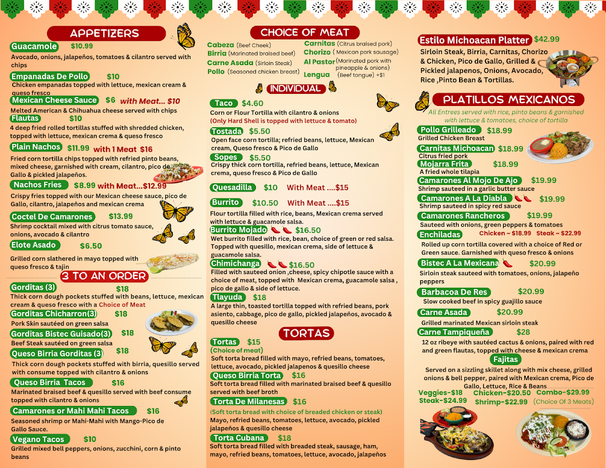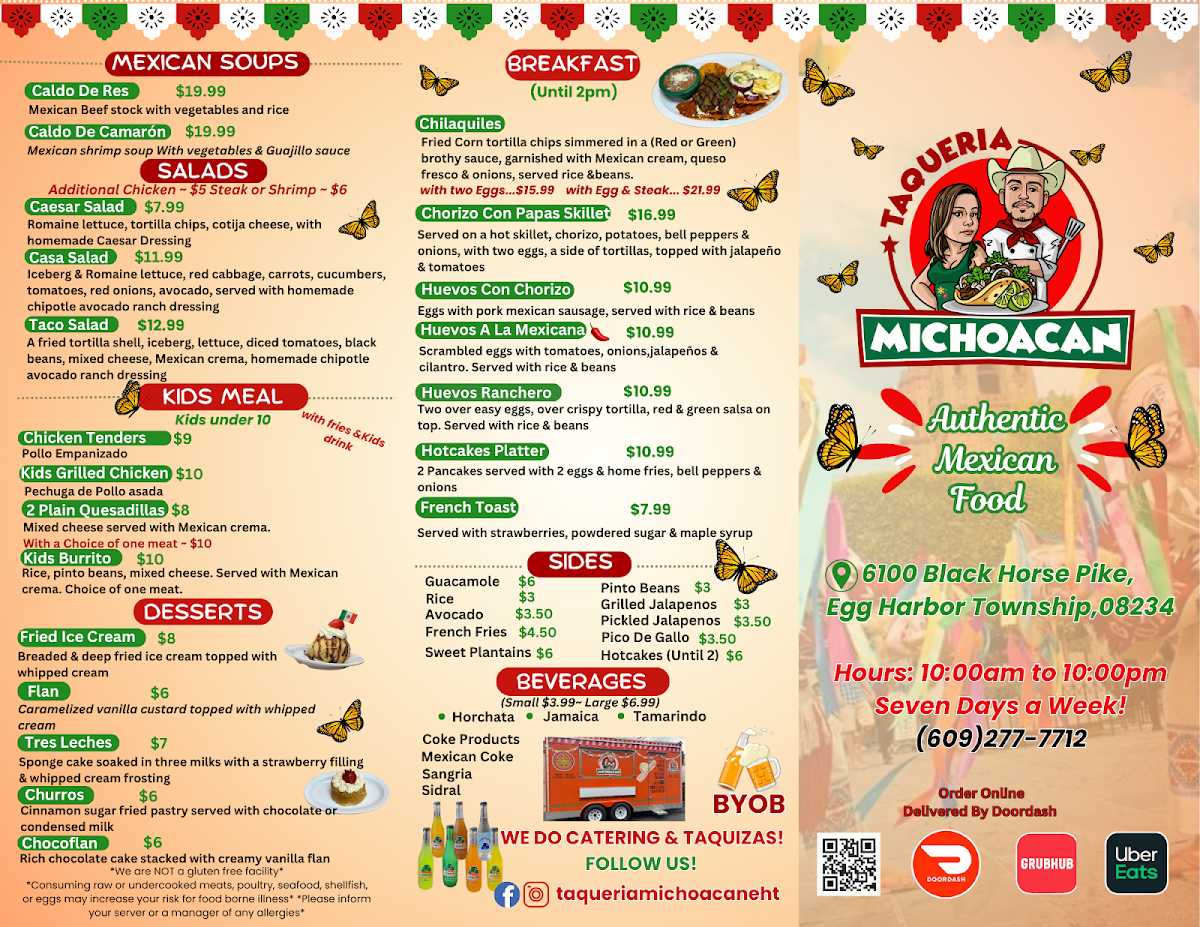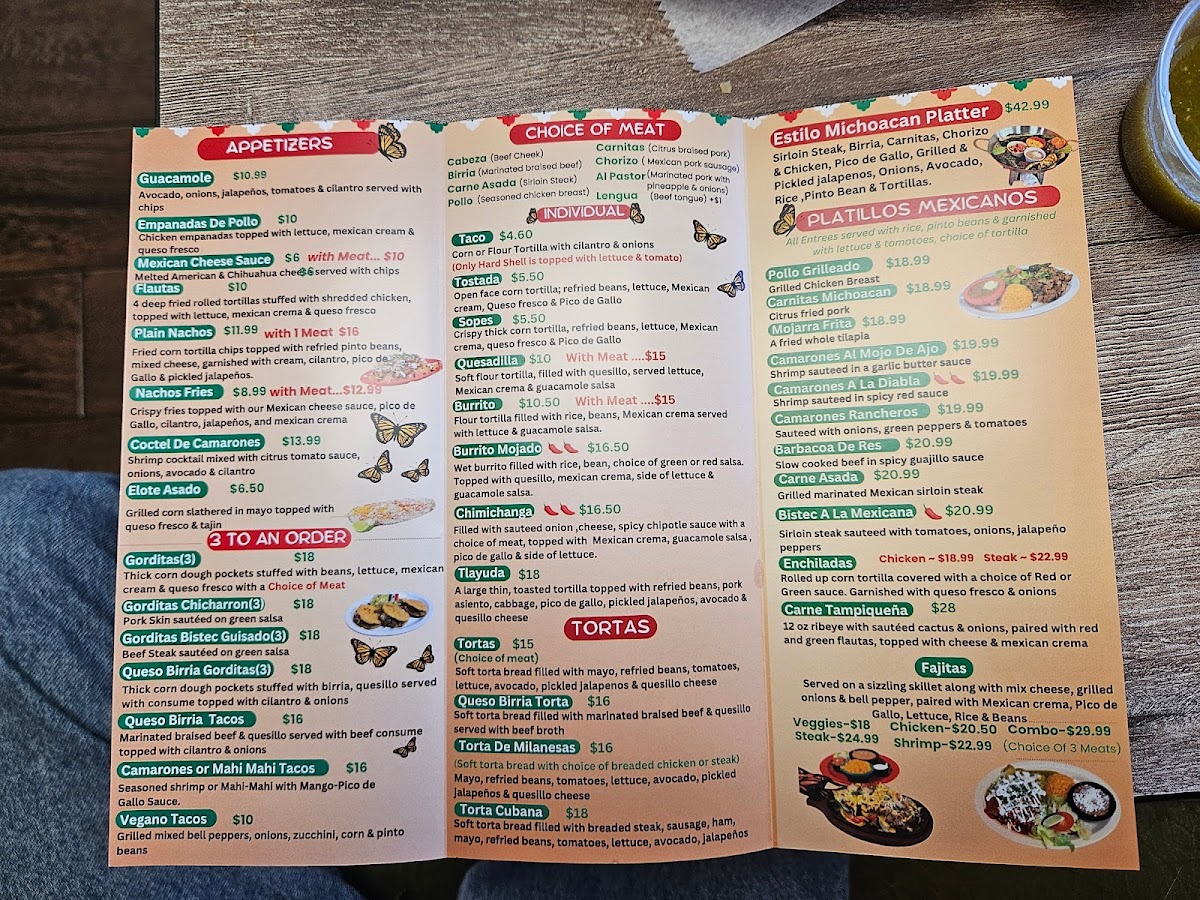 Taqueria Michoacán offers a menu that feels both approachable and comforting, showcasing authentic Mexican flavors in a casual dining setting. The menu features an inviting mix of classic tacos, hearty burritos, and flavorful platters, perfect for a relaxed lunch or a laid-back dinner with friends and family. Whether you’re stopping by for a quick bite or settling in for a full meal, the dishes here provide a satisfying sense of home-cooked tradition.