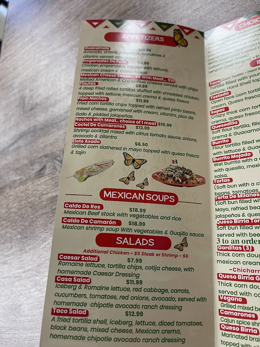 Highlights include well-crafted tacos like Carne Asada Al Pastor and Carnitas, alongside comforting options such as Chile Relleno and Steak Fajitas. Freshly made sides like guacamole and house salsa complement the main dishes, while desserts like flan and fried ice cream offer a gentle finish to the meal. Refreshing drinks such as horchata and the Chocoflan round out the experience, fitting perfectly with the warm and inviting atmosphere.